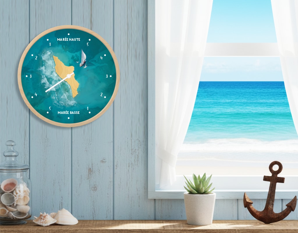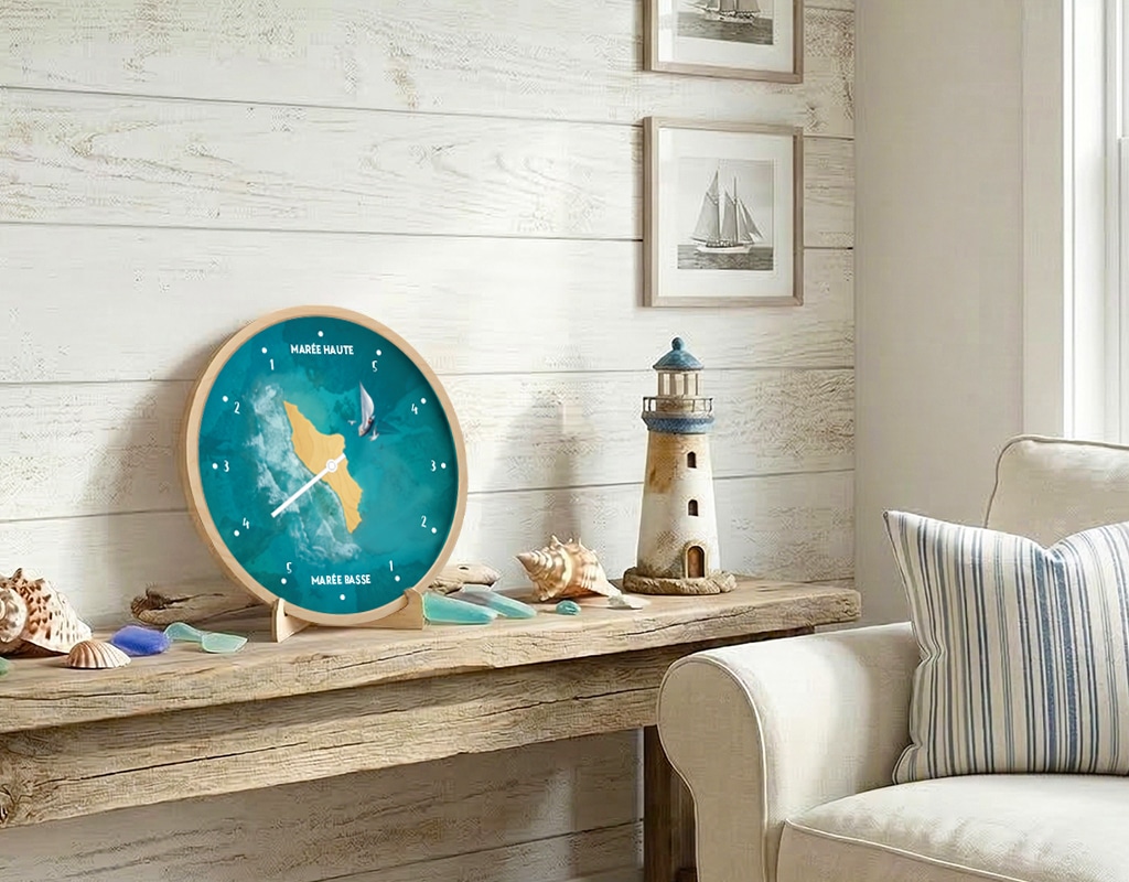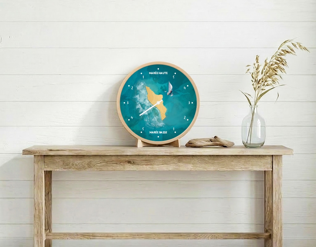Apportez une touche iodée et élégante à votre intérieur avec notre horloge des marées exclusive dédiée à l’Île d’Oléron. Bien plus qu’un simple objet de décoration, c’est un véritable outil pour les amoureux de l’estran, les surfeurs et les navigateurs.